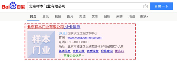 企业名片产品是基于百度搜索和百度企业信用,面向广大企事业单位提供的真实信息展现服务。多元触发词全面覆盖,先到先得!企业名片自上线以来,面向广大企业和机构,基于客观真实信息,为客户提供多方位信息汇聚展现,增加客户在互联网的曝光度,方便网民快速了解,助力客户更精准快捷的获得潜客信任。