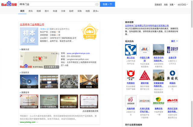 5、卡片外置企业logo、电话、官网、地址,减少转化路径;同步于百科词条页面露出,提升百科词条丰富度