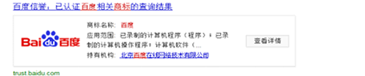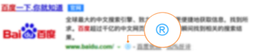 触发机制:无论搜索任何关键词,只要通过商标认证的网址,被检索出现在百度搜索结果中,都会展现蓝色®标。